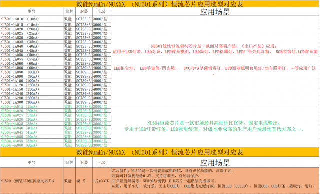 台湾数能NU501-1AXXX(升级版)全系列恒流IC电流分档